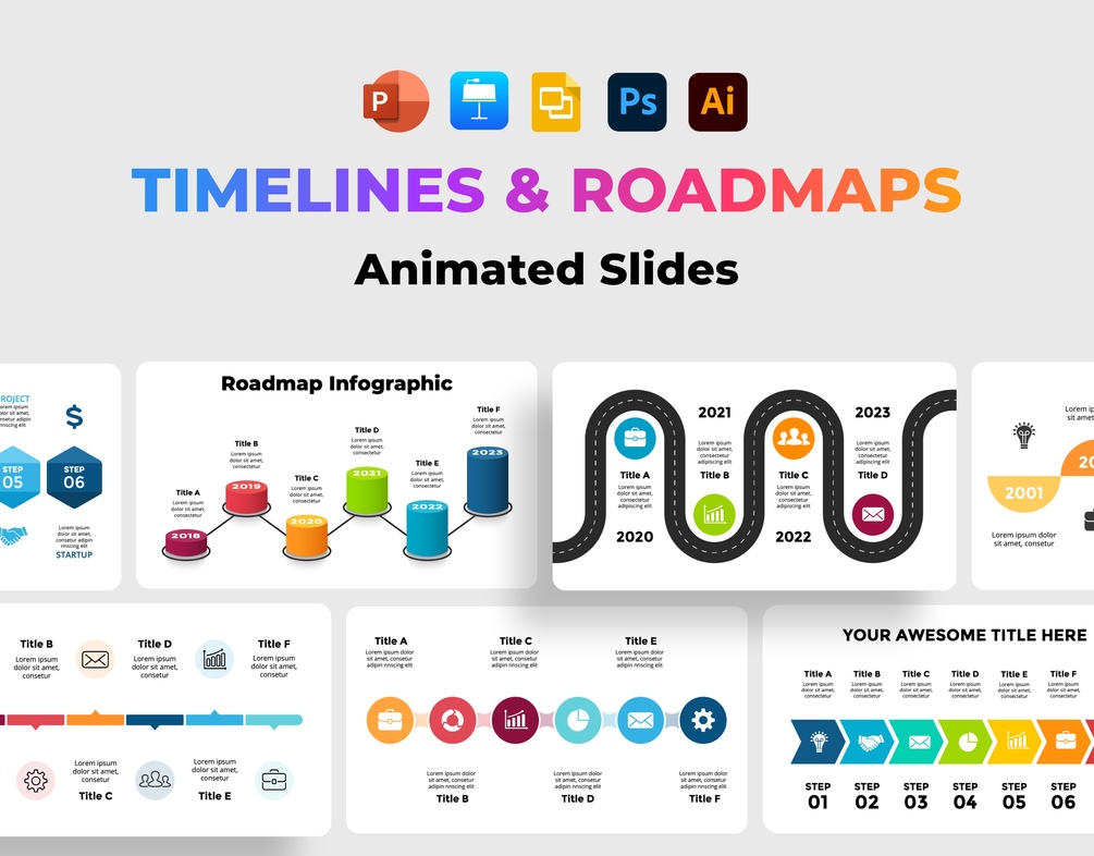 Timelines & Roadmaps Presentation Templates & Infographics. PowerPoint, Keynote, Google Slides, Vector & PSD. Animated Ppt Slides. Pitch Deck Design.
